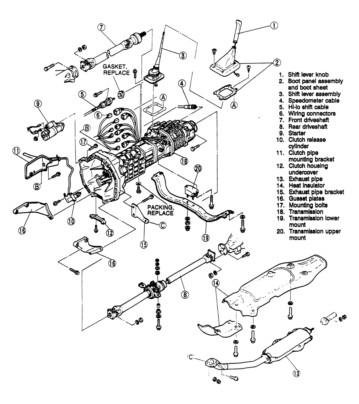 | Fig. 3: 1988–89 B2200 Pickup transmission