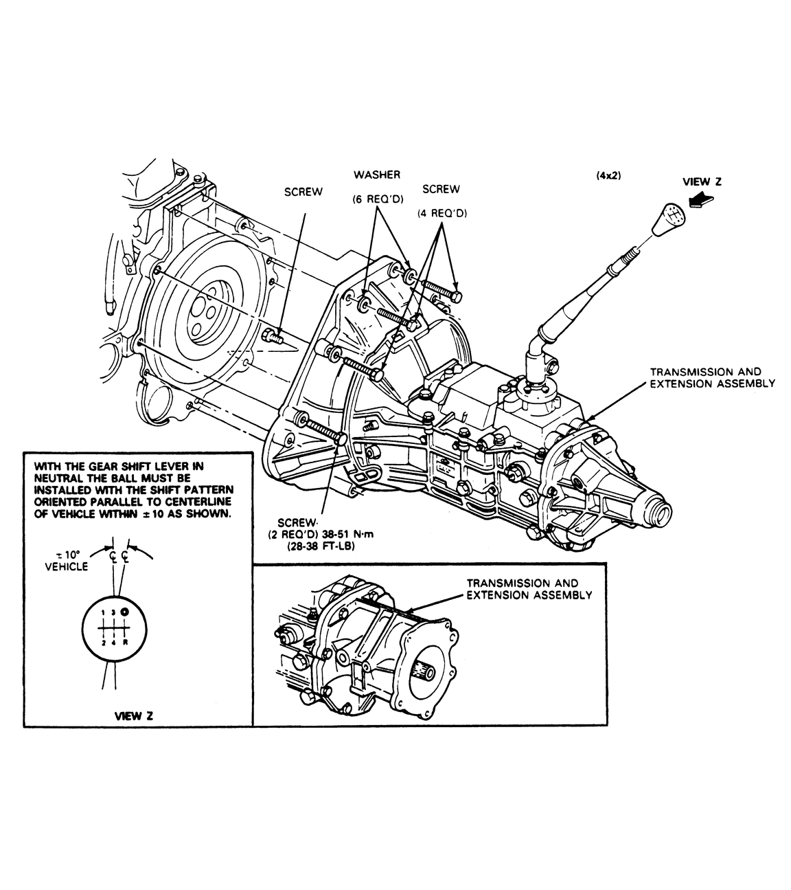 | Fig. 1: 5-Speed transmission with 4WD transfer case mounting