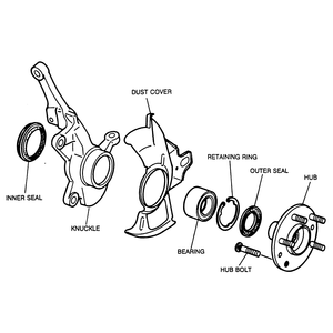 - Remove the nuts retaining the spindle to the steering knuckle. Tap the spindle