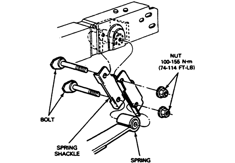 | Fig. 1: Rear leaf spring shackle removal/installation |