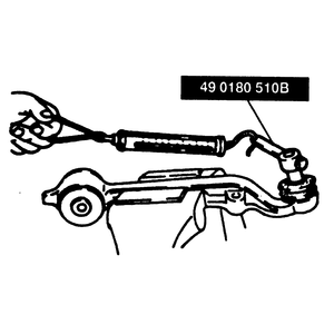 - Install tool 49 0180 510B or equivalent to the ball joint stud and attach