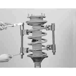 | Fig. 3: Install a coil spring compressor tool as shown,