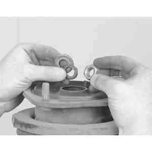 bench vise, then remove the top plastic cap from the strut bearing plate