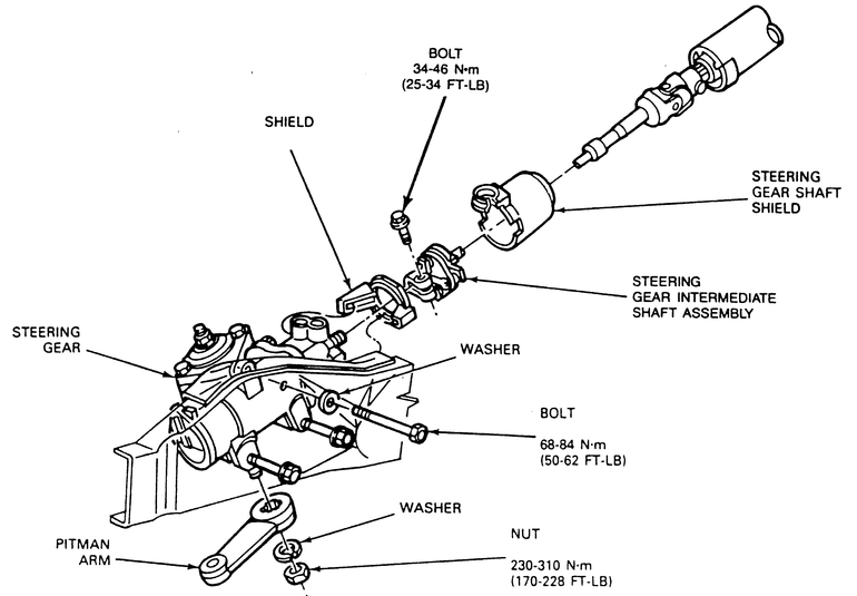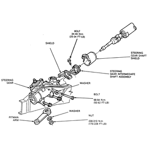 Work the steering gear free of the flex coupling. Remove the steering gear