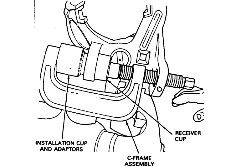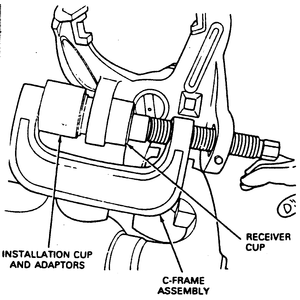 - Assemble the C-frame and receiver cup and press in the upper ball joint.