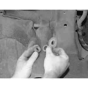 | Fig. 5: The top rear shock absorber mounting nut is accessible