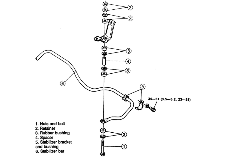 | Fig. 2: Exploded view of the rear stabilizer bar components |