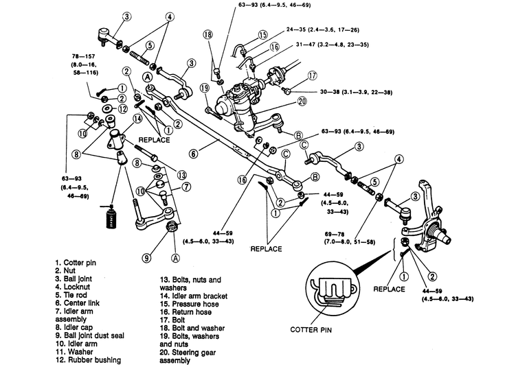 | Fig. 2: Pickup power steering linkage components |