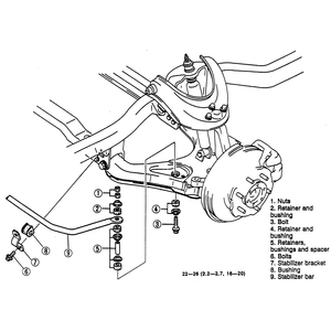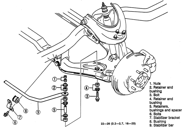 | Fig. 5: Exploded view of the Navajo stabilizer bar and related parts — rear wheel drive shown |