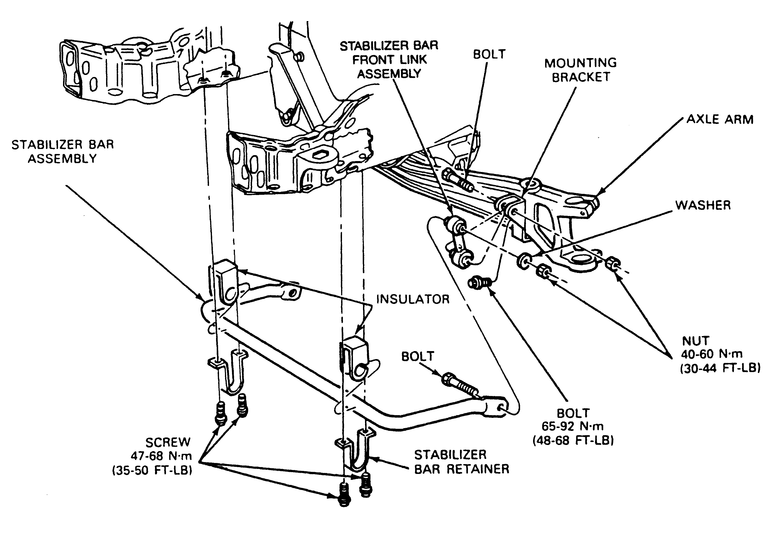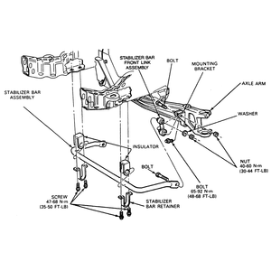 | Fig. 1: Stabilizer bar removal/installation — Pickups with 4WD |