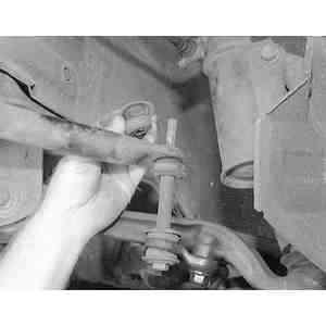 | Fig. 4: Remove the two sway bar bushing retainer mounting