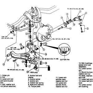 | Fig. 1: B Series Pickup 4WD torsion bar spring and lower control arm assembly |