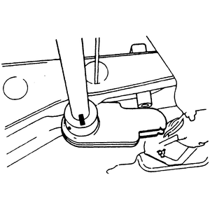 | Fig. 7: Tighten the lower ball joint-to-knuckle mounting