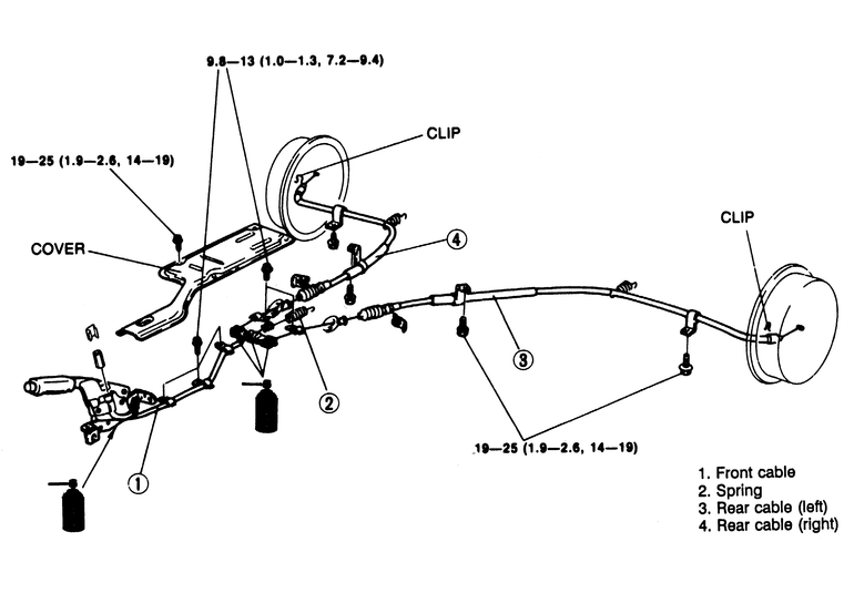 rear parking brake cable from the equalizer.
