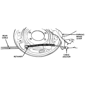 anchor behind the slot in the parking brake lever. Make sure the cable is