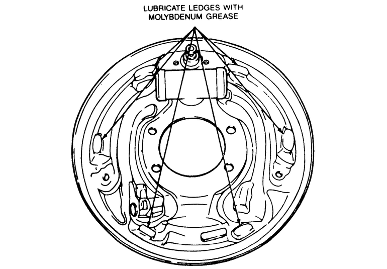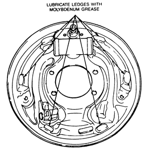 | Fig. 4: Apply a small dab of lube on the backing plate platforms |