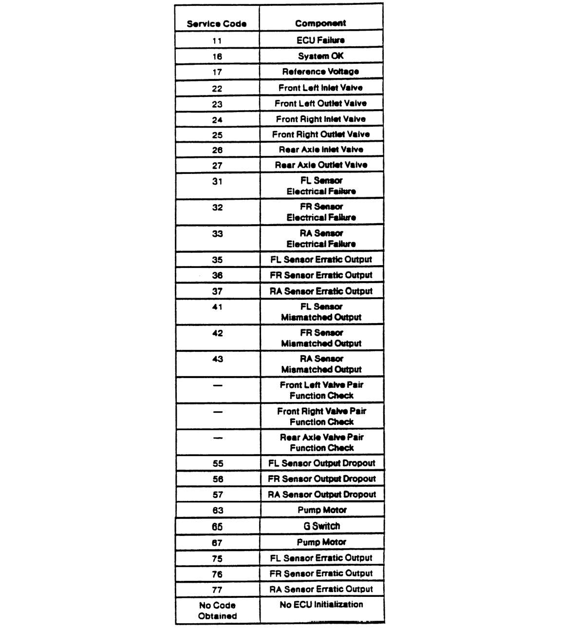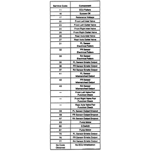 The 4WABS module performs system tests and self-tests during startup and normal operation. The valve, sensor and fluid level circuits are monitored for proper operation. If a fault is found, the 4WABS will be deactivated and the amber ANTI LOCK light will be lit until the ignition is turned OFF. When the light is lit, the Diagnostic Trouble Code (DTC) may be obtained. Under normal operation, the light will stay on for about 2 seconds while the ignition switch is in the ON position and will go out shortly after.