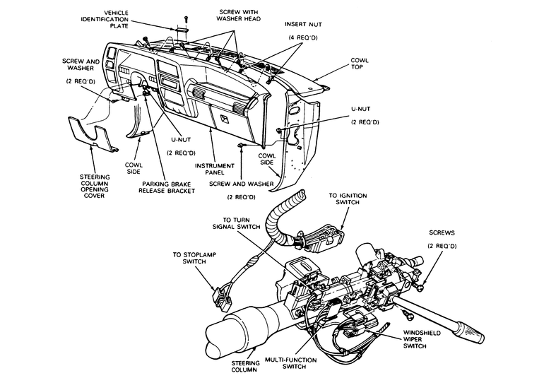 the instrument panel to disconnect the panel wiring, vacuum lines, radio antenna