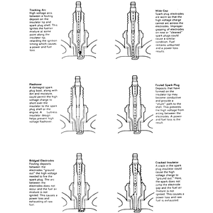 | Fig. 11: Used spark plugs which show damage may indicate engine problems |