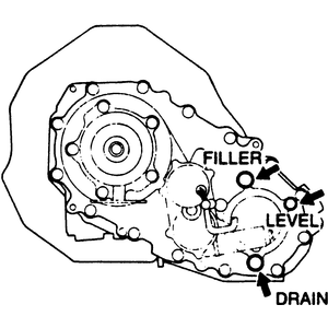 the drain and fill plugs. The fluid level should be up to that hole. Once