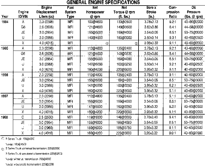GENERAL ENGINE SPECIFICATIONS