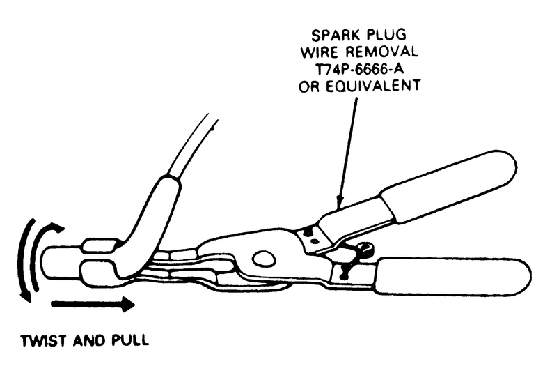 When removing spark plug wires, use great care. Grasp and twist the insulator back and forth on the spark plug to free the insulator. Do not pull on the wire directly as it may become separated from the connector inside the insulator.