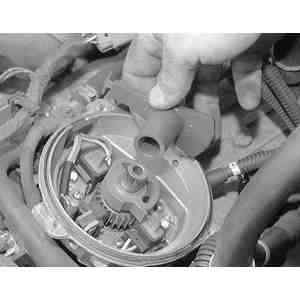 Fig. 3: After removing the distributor cap, pull the rotor straight up and off of the distributor shaft