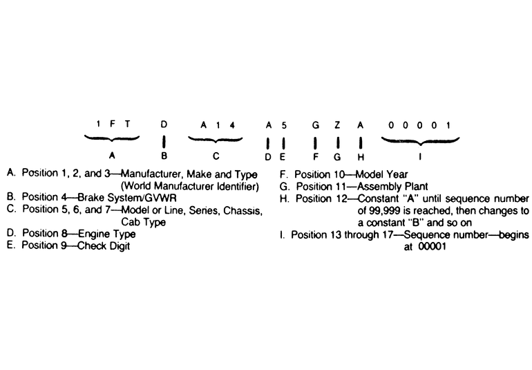 A 17 digit combination of numbers and letters forms the vehicle identification number (VIN).