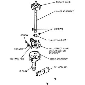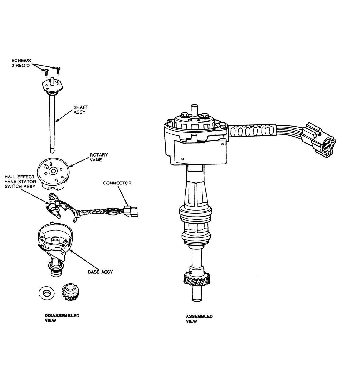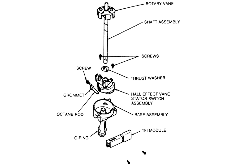 NOTE: If the vane and vane switch stator cannot be aligned by rotating the distributor in the cylinder block, remove the distributor enough to just disengage the distributor gear from the camshaft gear. Rotate the rotor enough to engage the distributor gear on another tooth of the camshaft gear. Repeat Step 9 if necessary.