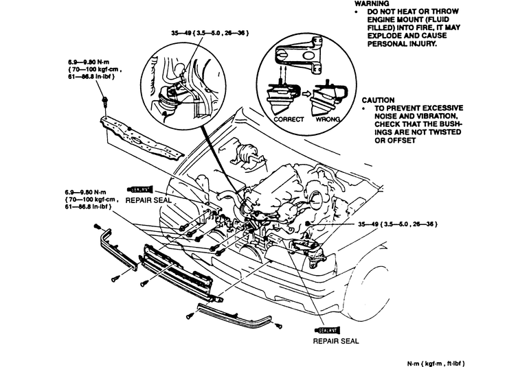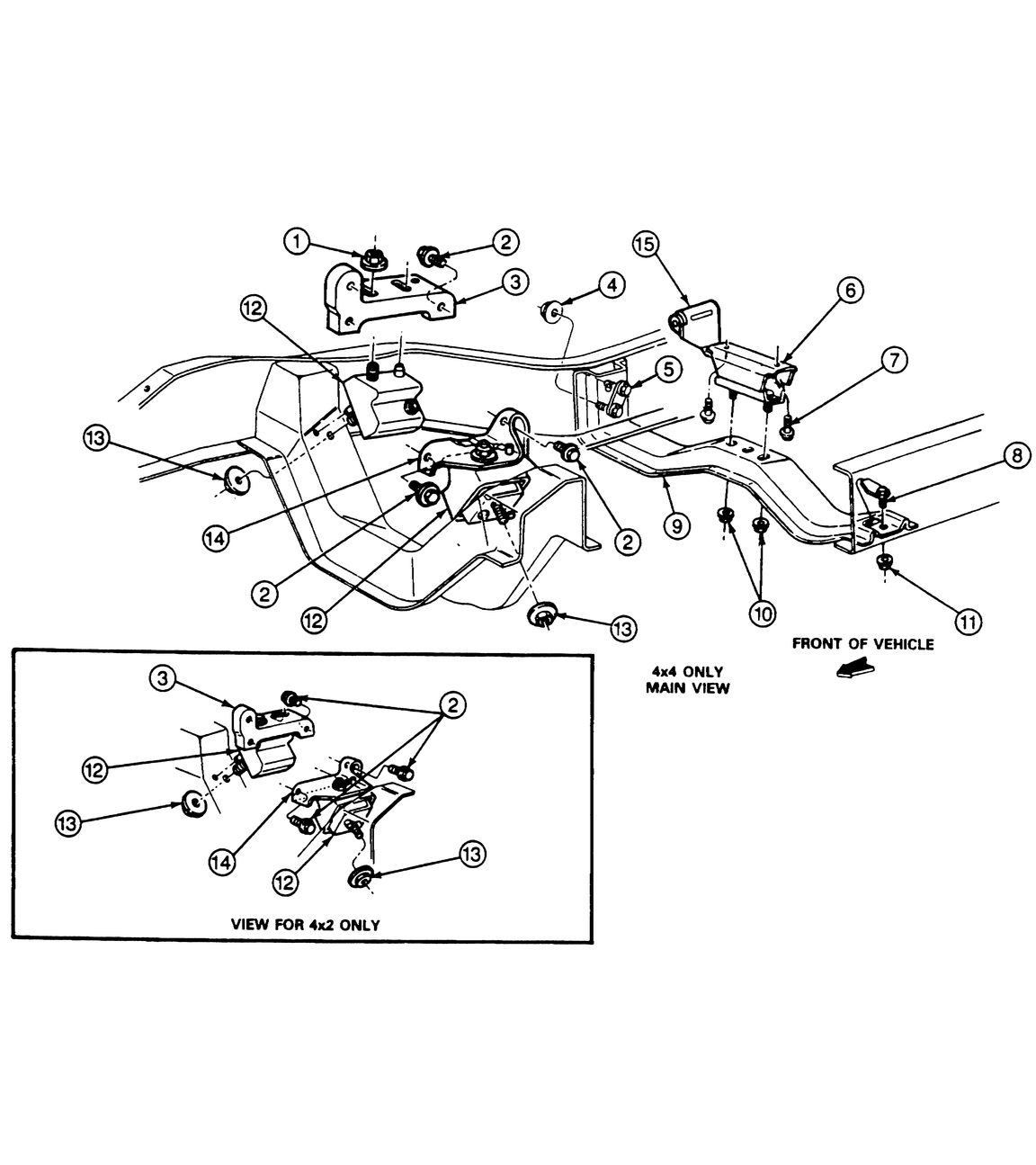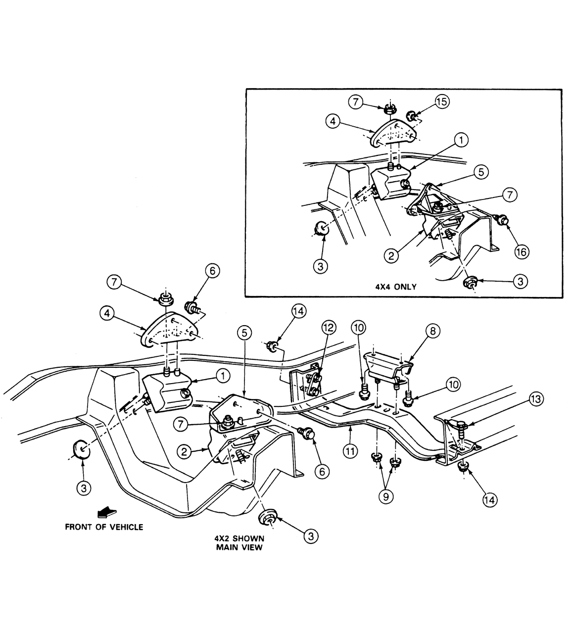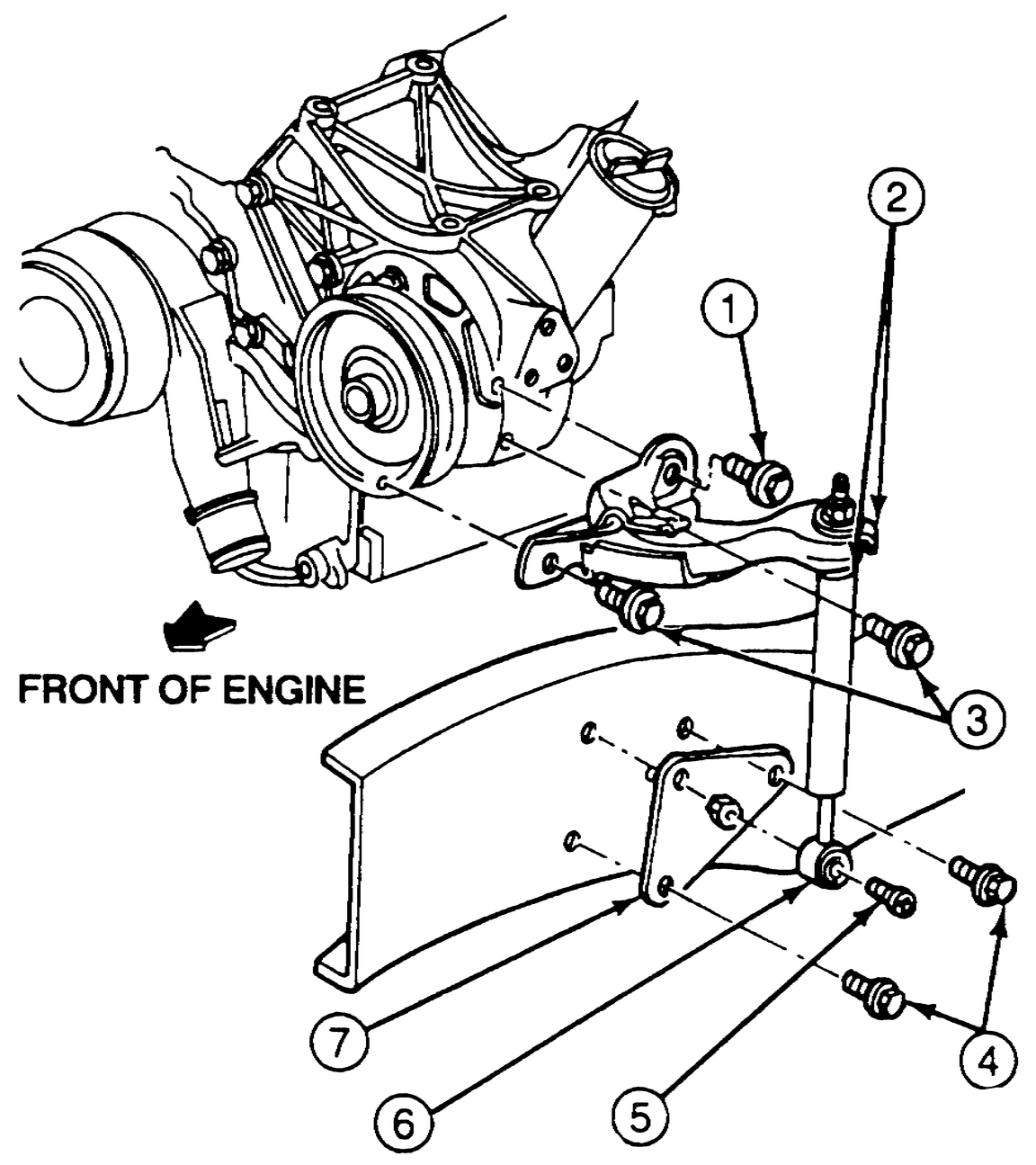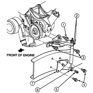 - Remove the front engine support insulator-to-crossmember retaining fasteners.