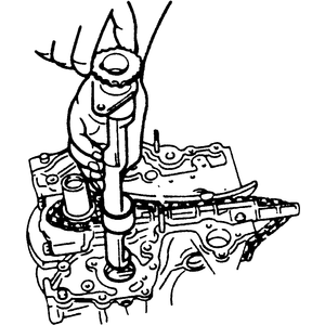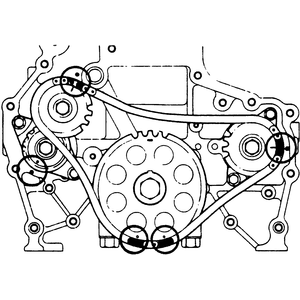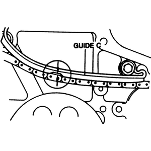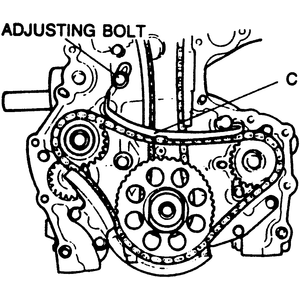 NOTE: If, when applying the downward force on the chain guide, it bottoms against the adjusting bolt, you should replace the balancer chain.