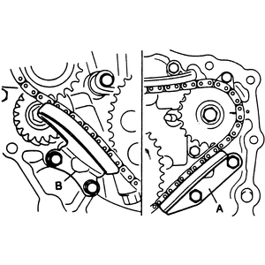 | Fig. 5: Install the balance shaft chain guides Aand B