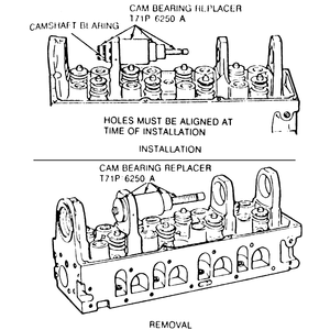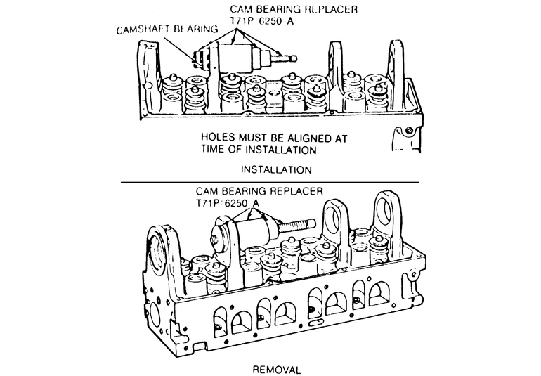 - Using the special tools and instructions in Cam Bearing Replacer Kit T65L–6250–A,