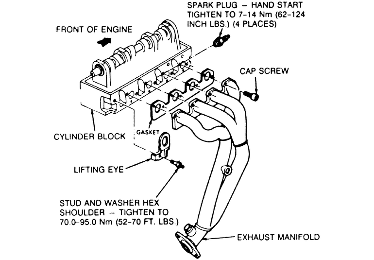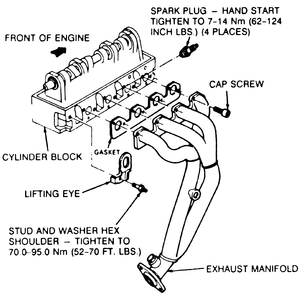 | Fig. 3: Exhaust manifold mounting bolt and stud tightening
