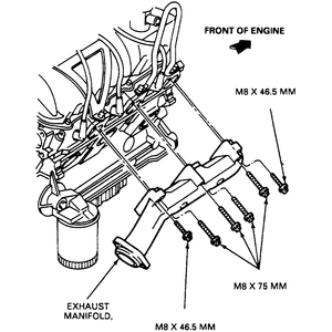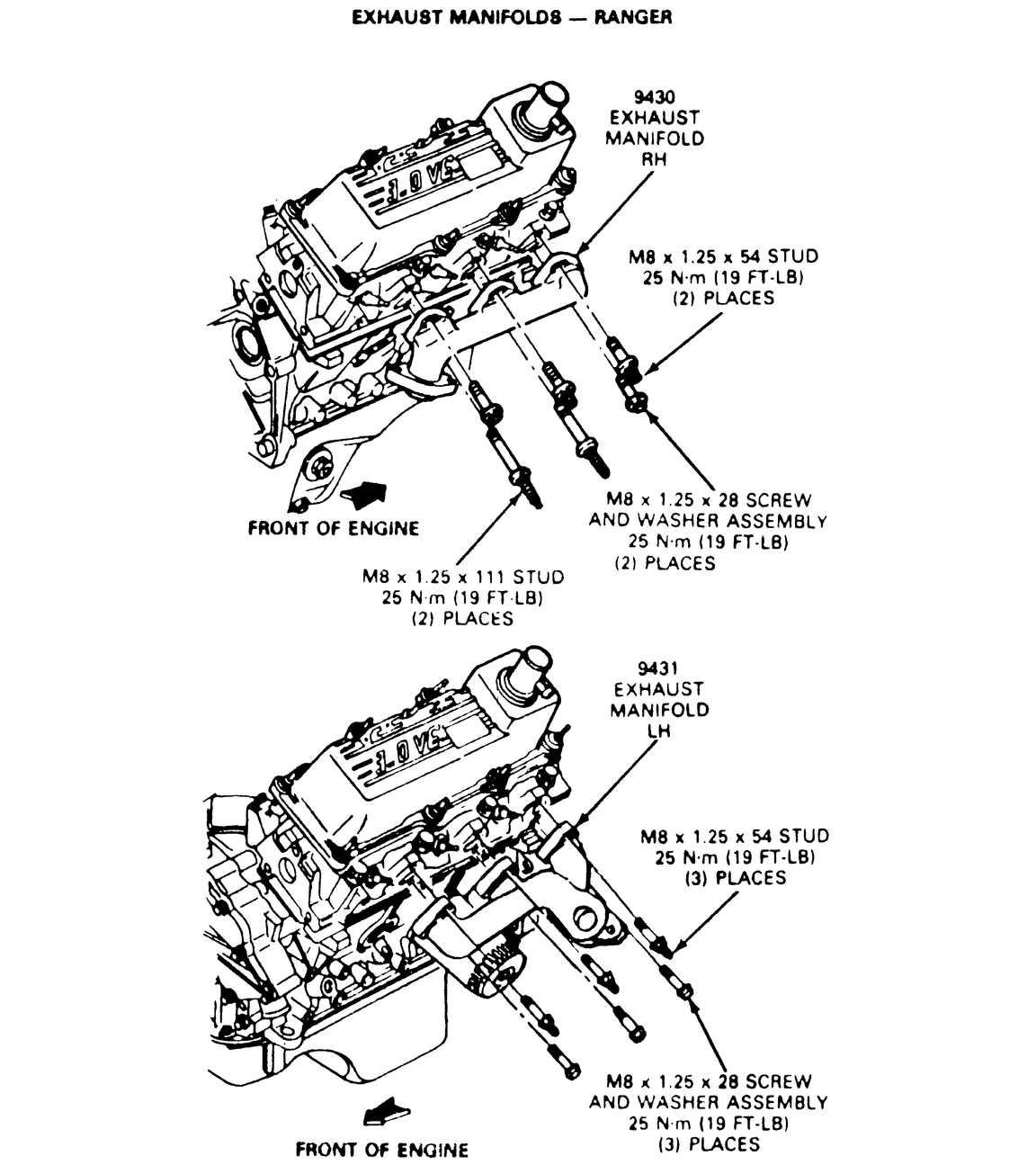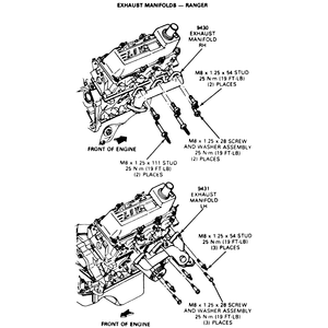 | Fig. 1: Exploded view of the 2.3L engine exhaust manifold |