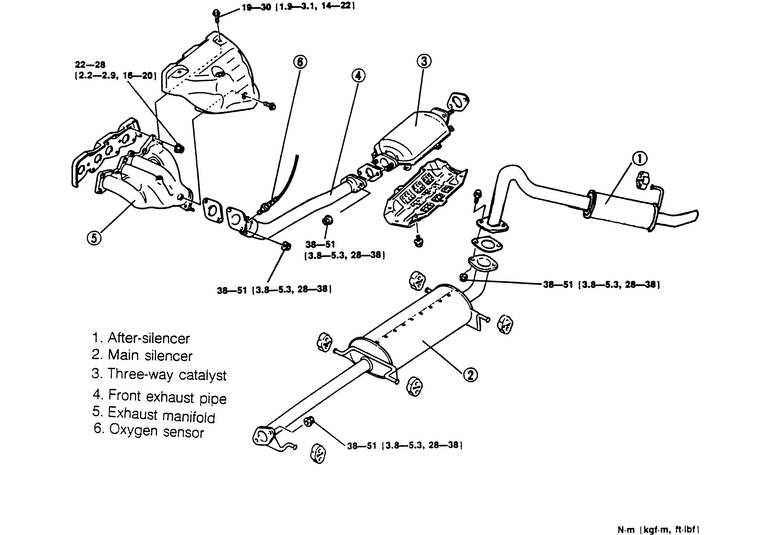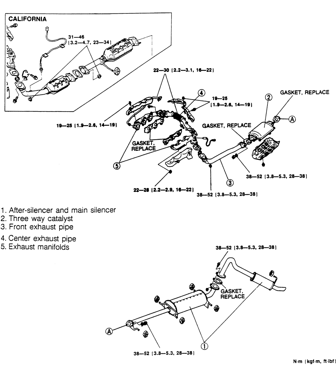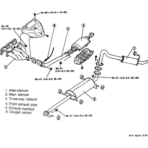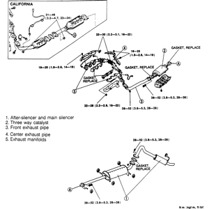 | Fig. 12: Exploded view of exhaust system components — 2.6L engine |