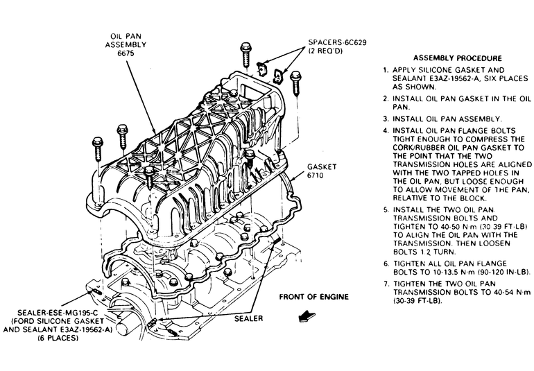 NOTE: Oil pan fits tightly between the transmission spacer plate and oil pump pickup tube. Use care when removing the oil pan from the engine.