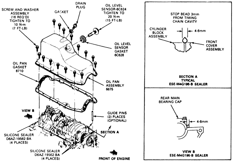 NOTE: Wait no longer than 4 minutes after applying silicone gasket sealant to install the oil pan.