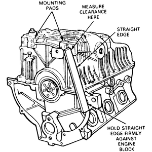 | Fig. 6: Checking oil pan alignment on the 4.0L engine