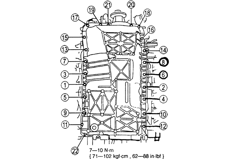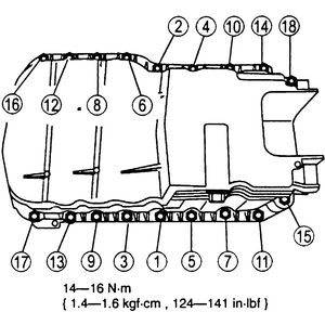 | Fig. 3: Oil pan mounting bolt tightening sequence