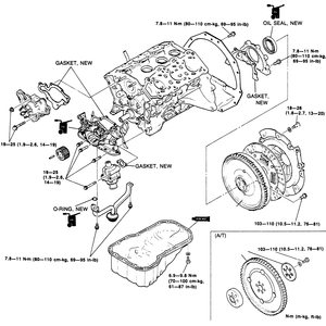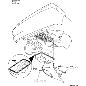 | Fig. 1: Oil pan on the 1994 2.3L engine — 1995 — 98 engines similar |