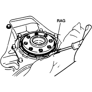 - Using a small prying tool protected with a rag, remove the oil seal.