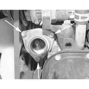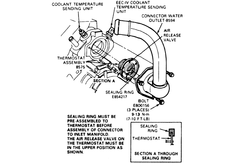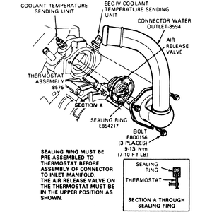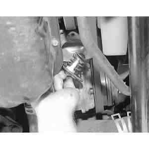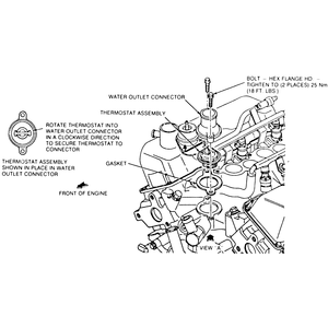 | Fig. 8: Thermostat installation for the 3.0L engine |