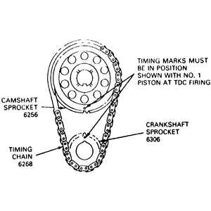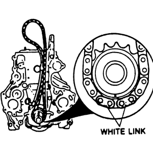 - Align the plated links of the timing chain with the timing marks on the