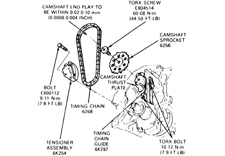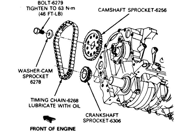 to 46 ft. lbs. (62 Nm). Lubricate the timing chain assembly.