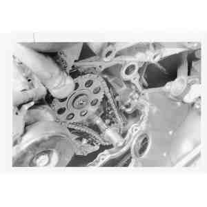 - Remove the camshaft and crankshaft sprockets with the timing chain.