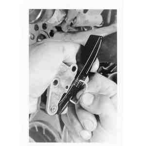 - Remove the lower tensioner bolt and install a holding clip in the bolt hole