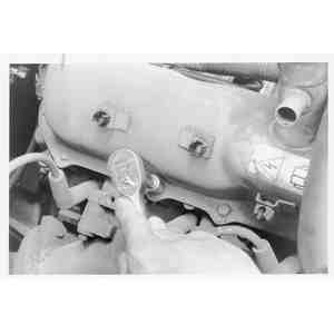 - Remove the exhaust side spark plug wire retainer from the studs on the valve