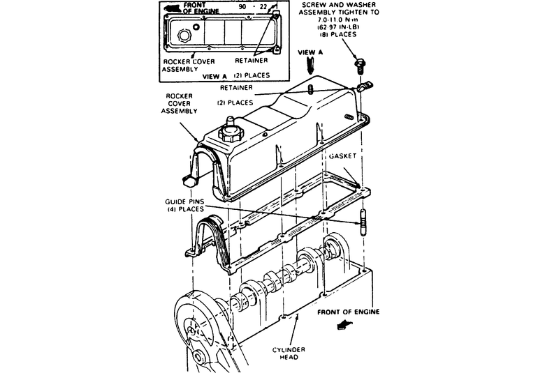 - Install the rocker cover. Torque the bolts to 5278 inch lbs. (6–9