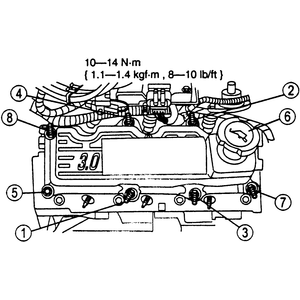 - Install the valve cover and mounting bolts. Tighten the mounting bolts to